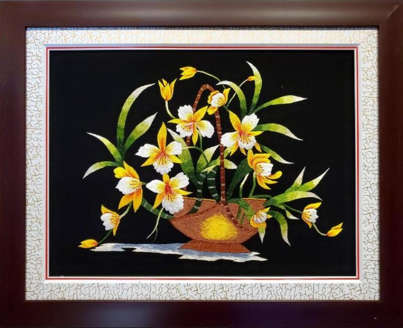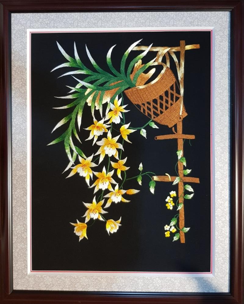 Tranh thêu hoa lan – nghệ thuật thủ công tinh tế