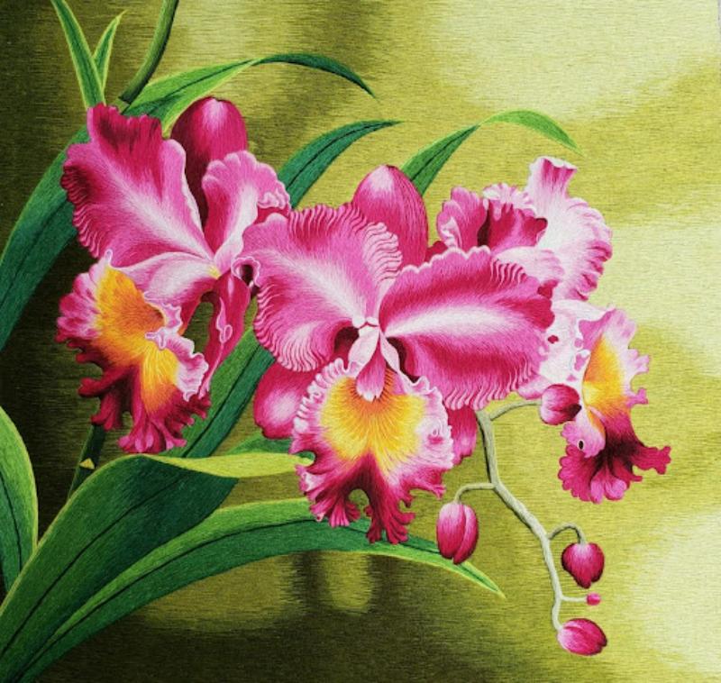 Một bức tranh thêu hoa lan chất lượng cao phải được làm từ vật liệu cao cấp và kỹ thuật thêu tinh xảo.
