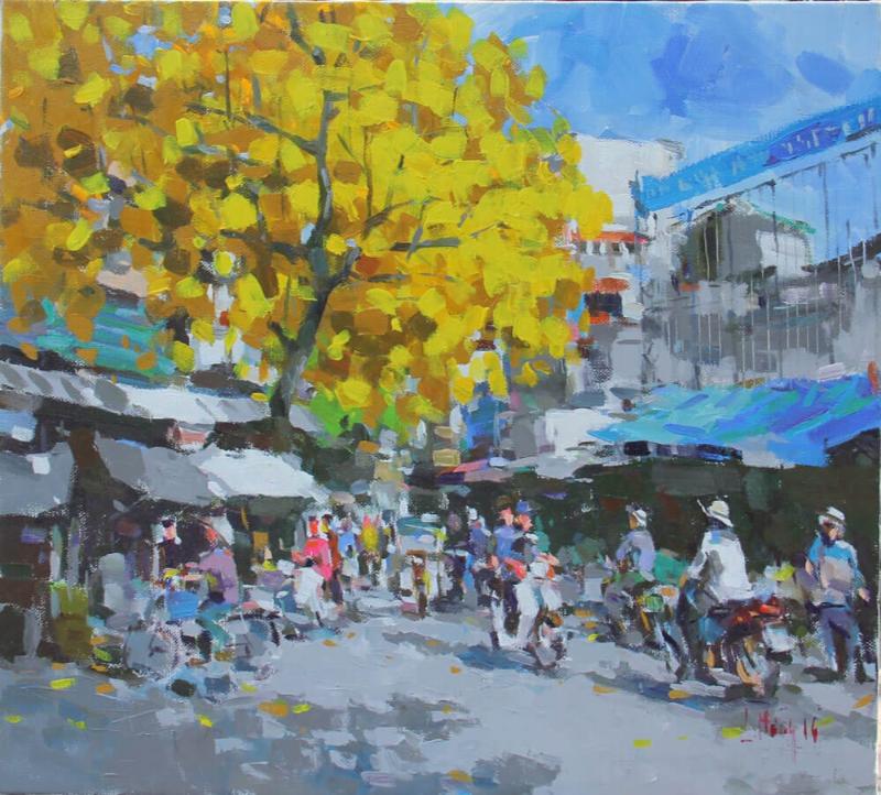 Hà Nội xưa vốn nổi tiếng với những con phố hẹp lát đá, những dãy nhà mái ngói đỏ nâu, tường vàng phai màu và hàng cây xanh đổ bóng. Mỗi góc phố đều chất chứa một câu chuyện, một nhịp sống bình dị nhưng đầy cảm xúc. Chính bối cảnh này đã trở thành nguồn cảm hứng vô tận cho các họa sĩ Việt Nam.