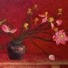 “Bạch Liên Hoa” sáng tác năm 2024, mang đến cảm giác thanh khiết và tĩnh lặng như một khúc thiền trong sắc xanh mát lành. Những bông sen trắng được đặt trong chiếc bình gốm mộc, hòa cùng nền xanh đồng điệu, gợi sự giản dị mà sâu lắng. Ánh sáng nhẹ nhàng phủ lên từng cánh hoa, như khẽ gợi một niềm an nhiên. Bạch Liên Hoa là lời mời bước vào khoảng lặng của tâm hồn – nơi con người tìm lại sự cân bằng và trong sáng giữa đời sống bộn bề.