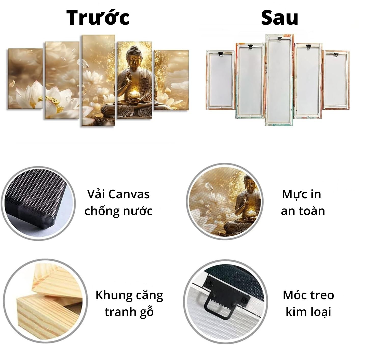 Bộ 5 tranh phật giáo thiền định uy nghi