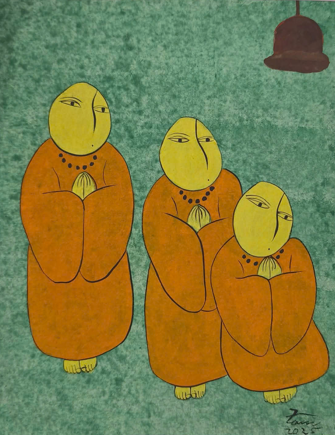 “Hòa Điệu Vô Ưu” khắc họa ba vị tỳ kheo trong tư thế an nhiên, thanh tịnh với nụ cười hòa ái. Tác phẩm sử dụng gam màu ấm áp, kết hợp hài hòa giữa nét vẽ truyền thống và hiện đại, mang đến một cảm giác bình yên, nhẹ nhàng và sự thấu hiểu. Mỗi vị tỳ kheo đại diện cho một đức tính tốt đẹp: Trí Tuệ, Từ Bi, Hỷ Xả. “Hòa Điệu Vô Ưu” là một tác phẩm nghệ thuật ý nghĩa, gợi nhắc về sự tĩnh tại trong tâm hồn và khơi gợi niềm hy vọng về một cuộc sống bình yên, không phiền muộn.