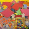 “Phố Đông Thái” sáng tác năm 2025, một góc phố miền Bắc hiện lên như đang thở, nơi sắc đỏ ngói nhà hòa cùng dòng người rực rỡ dưới chợ hoa. Những khối nhà xiêu vẹo, những dáng người đội nón nghiêng nghiêng được vẽ bằng nhịp cọ mạnh mẽ, gấp gáp mà giàu nhạc tính. Màu sắc đan xen: tím, hồng, vàng như thứ ánh sáng nội tâm, khiến cảnh sinh hoạt trở nên rộn ràng mà vẫn đầy hoài niệm. “Phố Đông Thái” không kể chuyện, chỉ mở ra cảm xúc về sự ấm áp, về vẻ đẹp dân dã vẫn rực rỡ giữa dòng đời chuyển động.