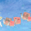 “Tĩnh Tâm” sáng tác năm 2015, khắc họa hình ảnh ngôi nhà hòa lẫn với thân thể người, tạo nên biểu tượng của chốn nương náu tinh thần. Trên nền vàng rực, các mảng hình giản lược gợi cảm giác vừa ấm áp vừa cô tịch. Căn nhà như bức tường chở che, đồng thời là thân thể con người đang tìm về sự lắng đọng giữa nhịp sống xô bồ. Bức tranh mang sắc thái siêu thực, nhấn mạnh khát vọng về một không gian riêng, nơi tâm hồn có thể nghỉ ngơi và tìm thấy sự cân bằng.