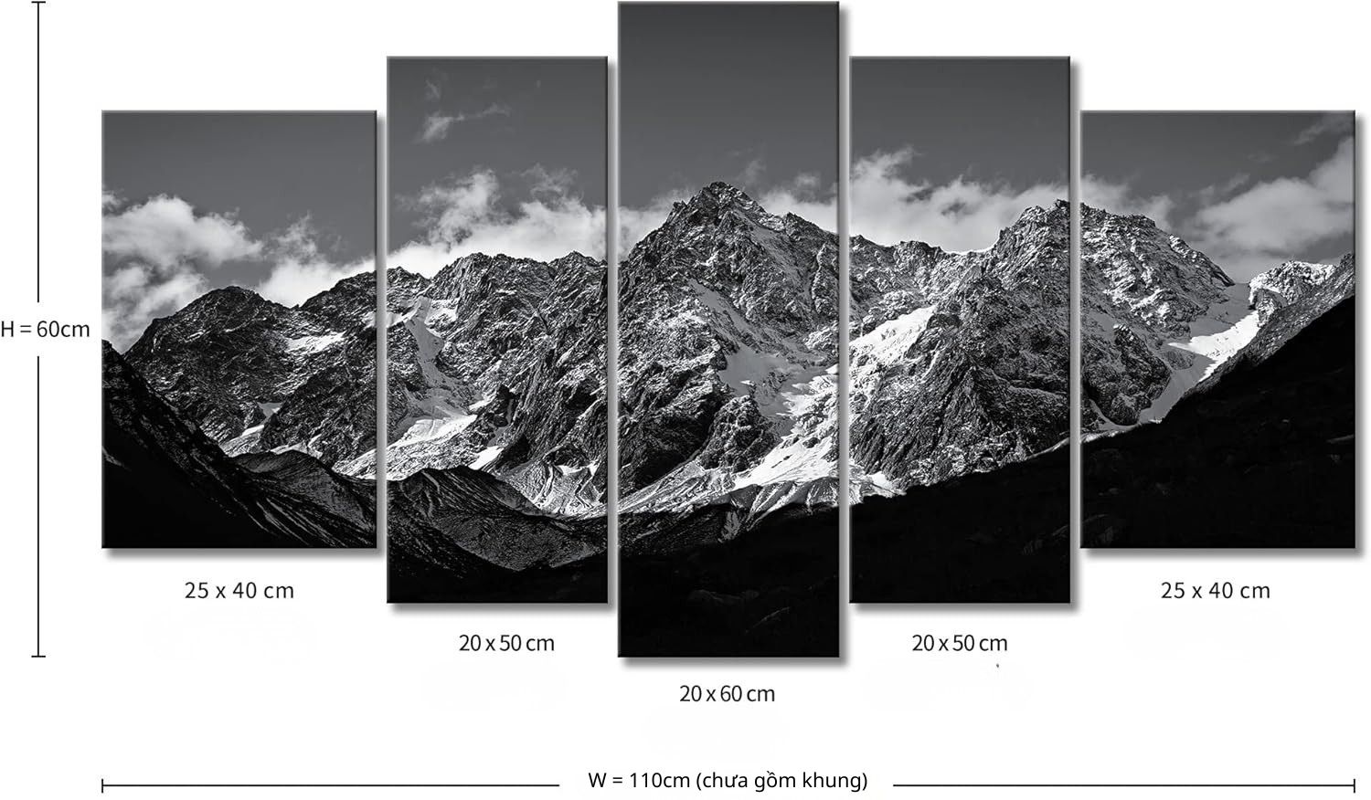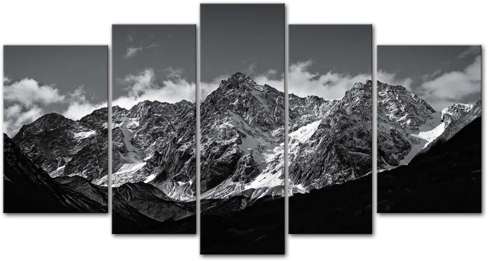 Bộ tranh canvas 5 tấm núi non trắng đen mang đến sự hùng vĩ, tĩnh lặng sang trọng để tạo điểm nhấn hiện đại cho phòng khách, văn phòng hoặc sảnh lớn.