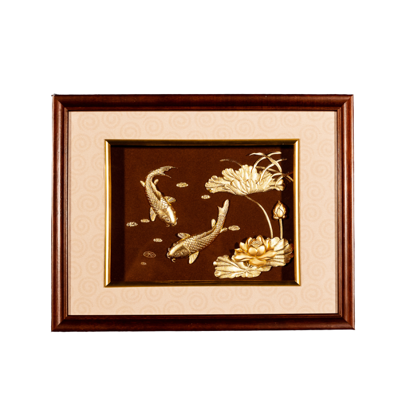 Tranh cá chép hoa sen bằng đồng mạ vàng