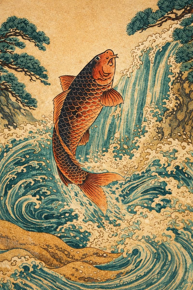 Tranh Cá Chép Vượt Thác Phong Cách Nhật Bản