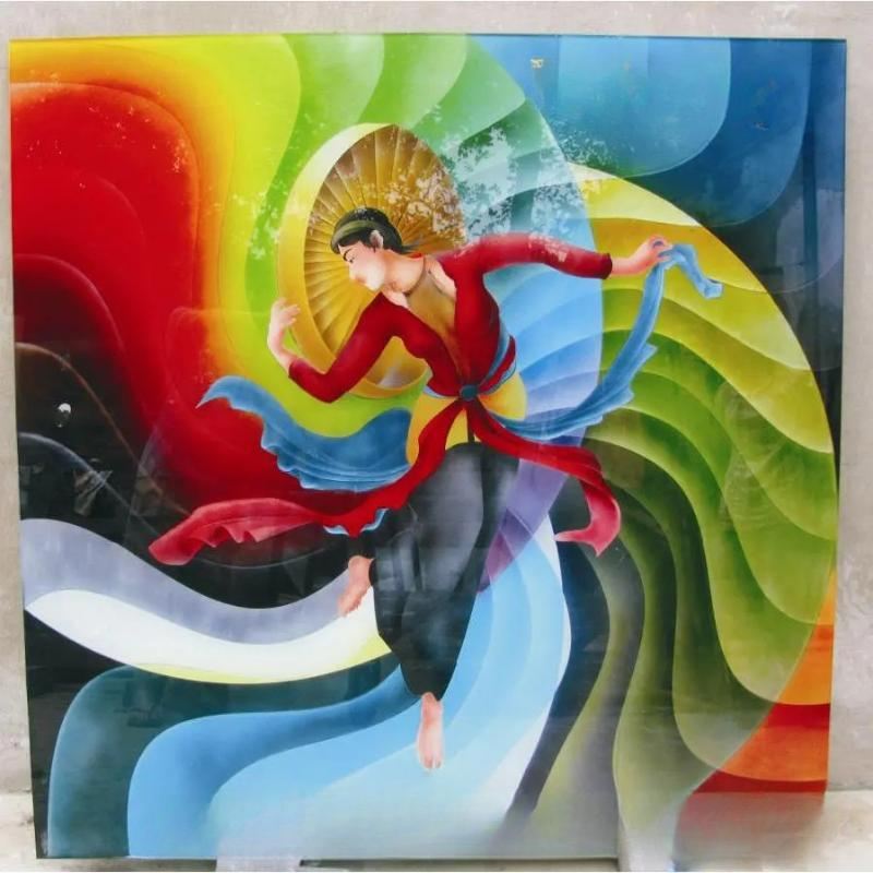 Tranh kính nghệ thuật cô gái múa nón quai thao phong cách đương đại