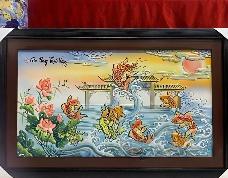 Tranh gốm Cá Chép Vượt Long Môn