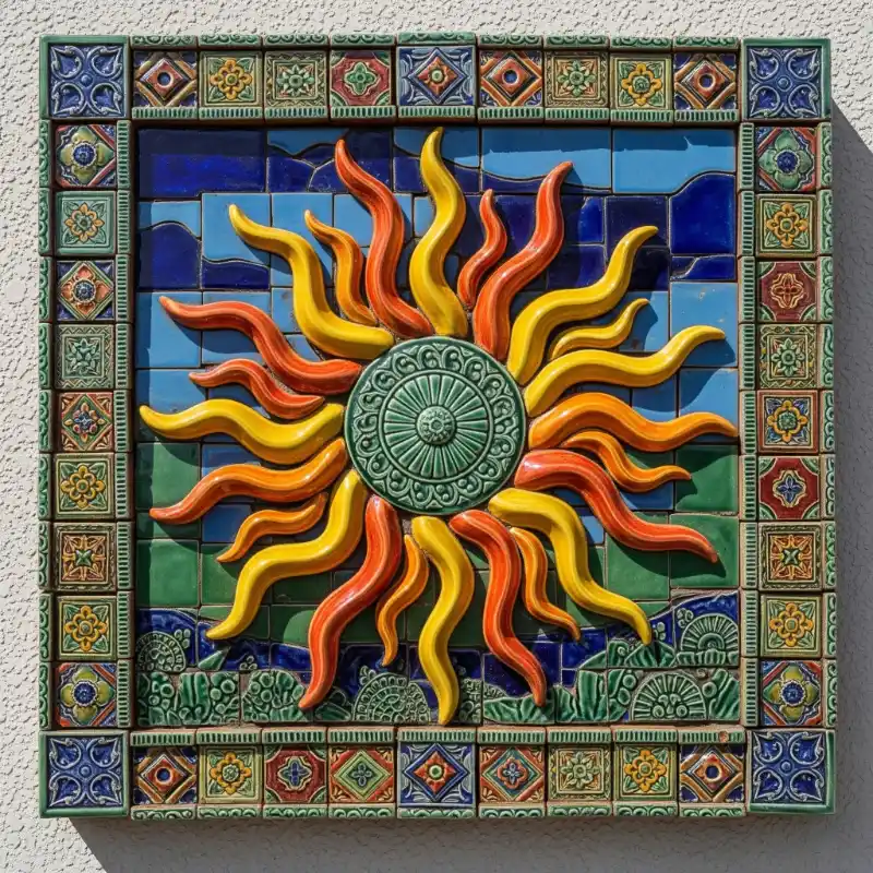 Tranh gốm phù điêu mặt trời