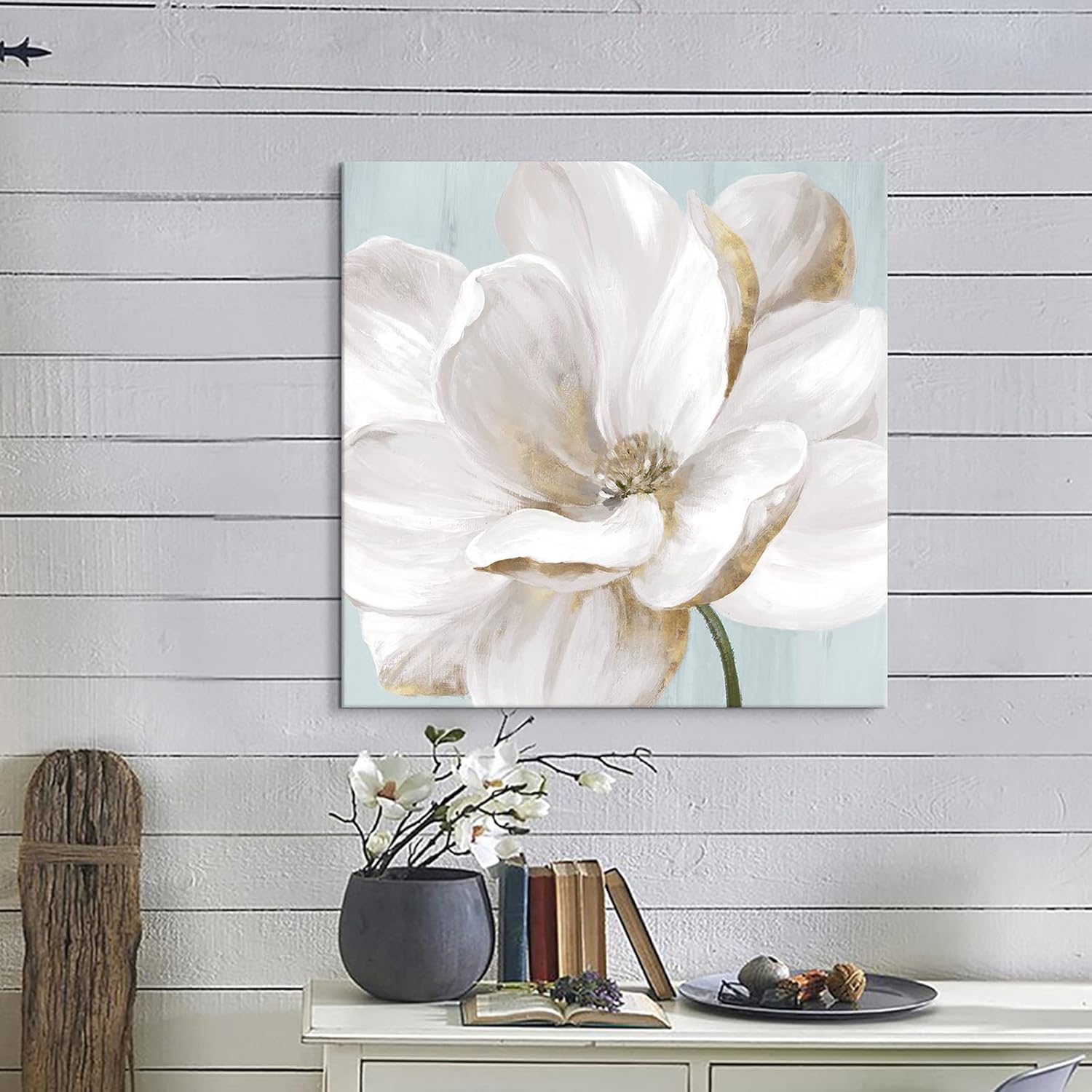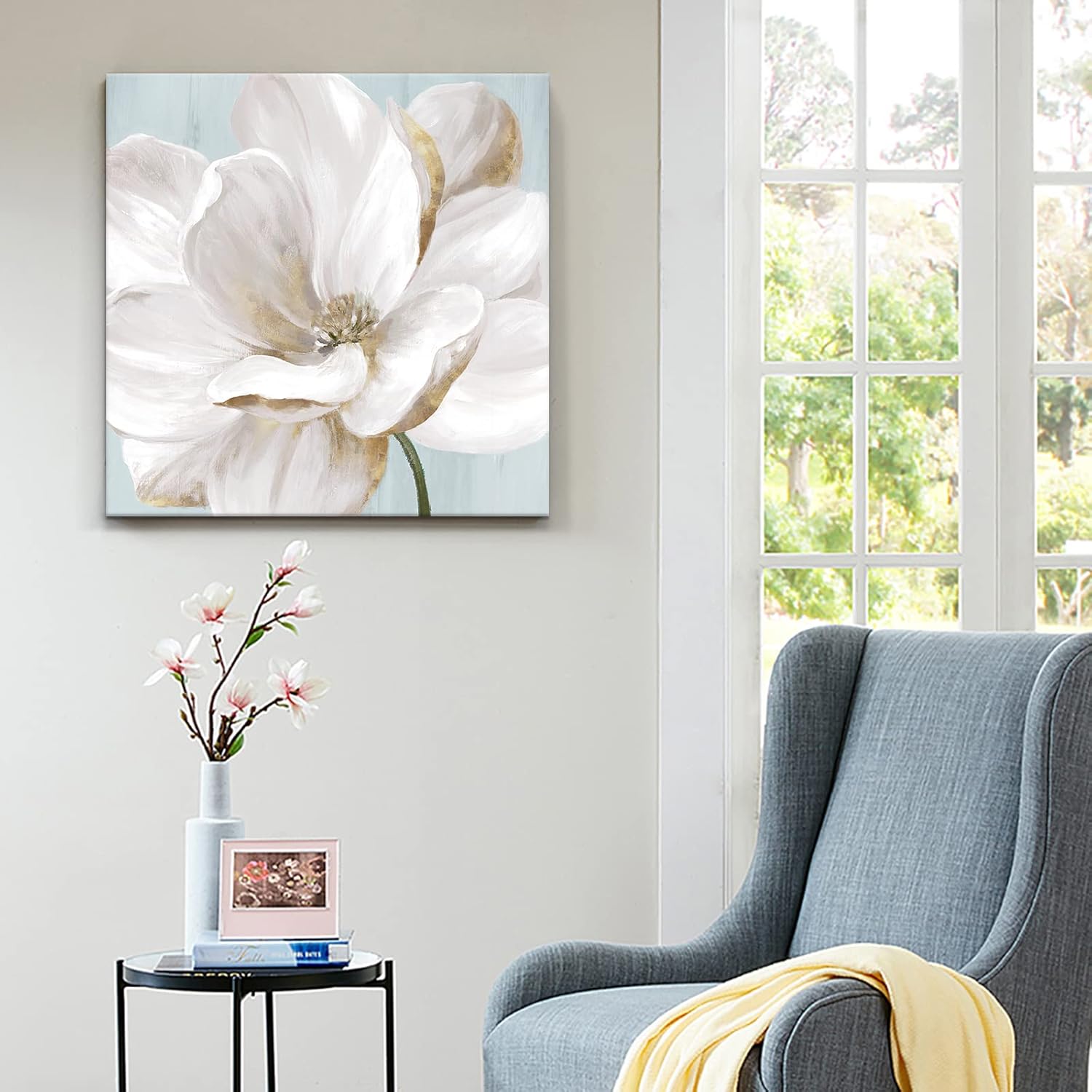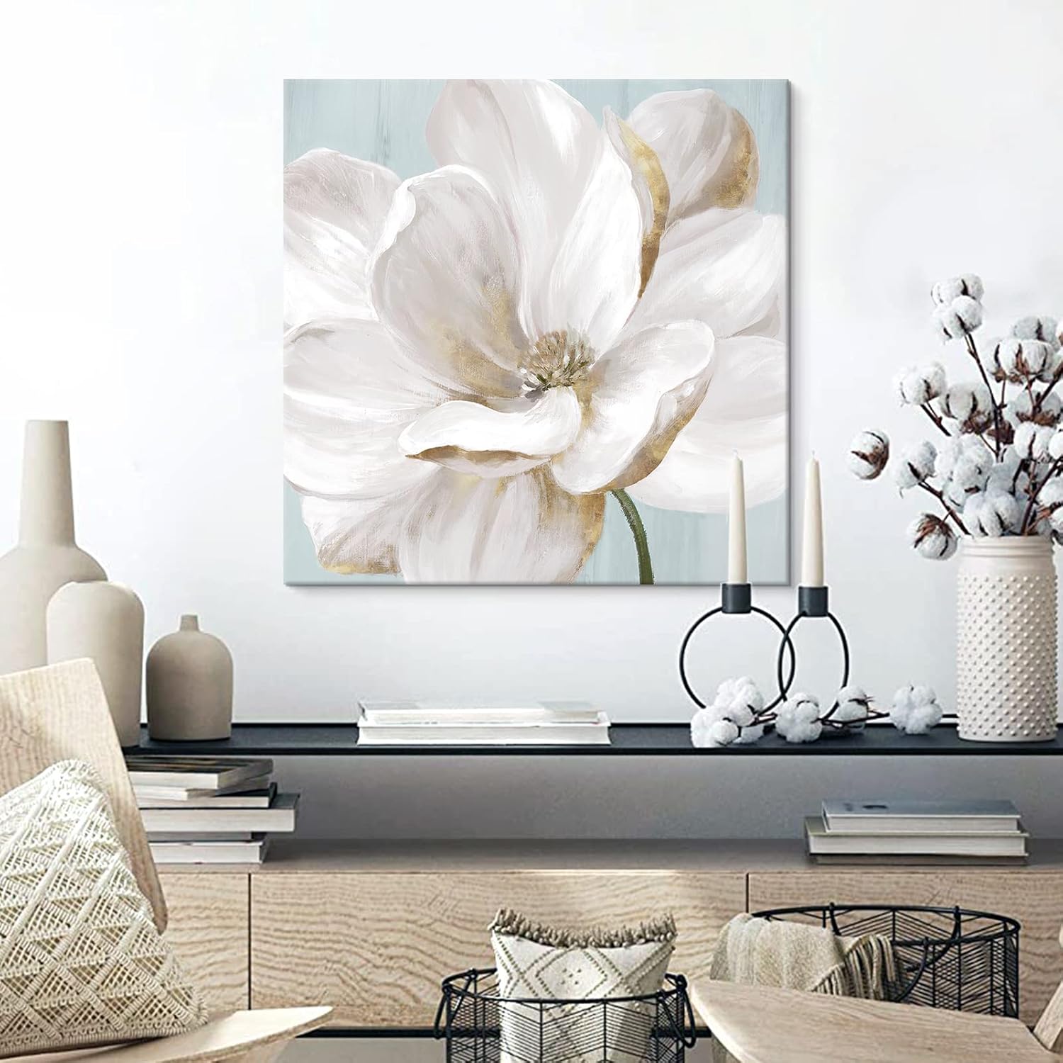 Tác phẩm đóa mộc lan bừng nở tinh khôi với những đường viền ánh kim kiêu sa, mang hơi thở Bắc Âu nâng tầm đẳng cấp cho mảng tường phòng khách hiện đại.