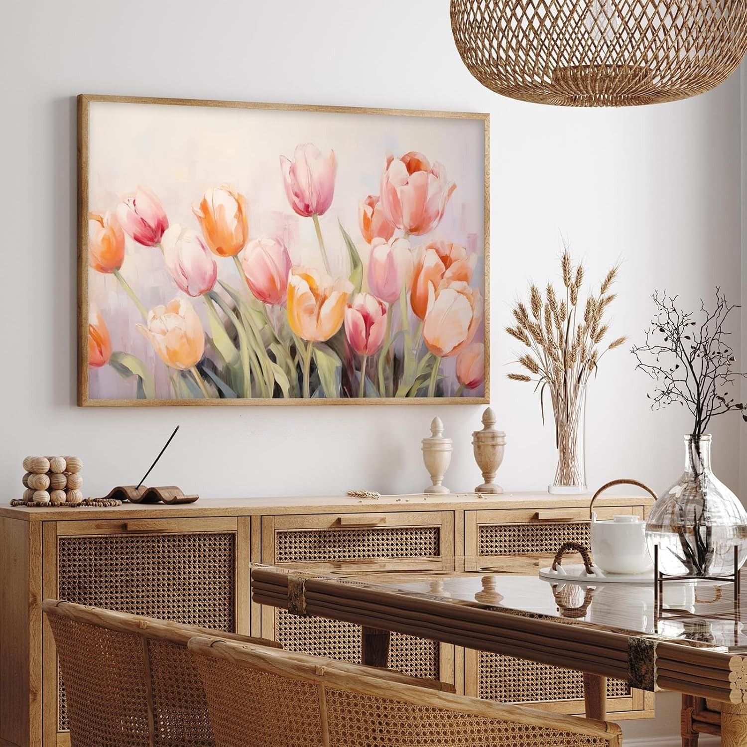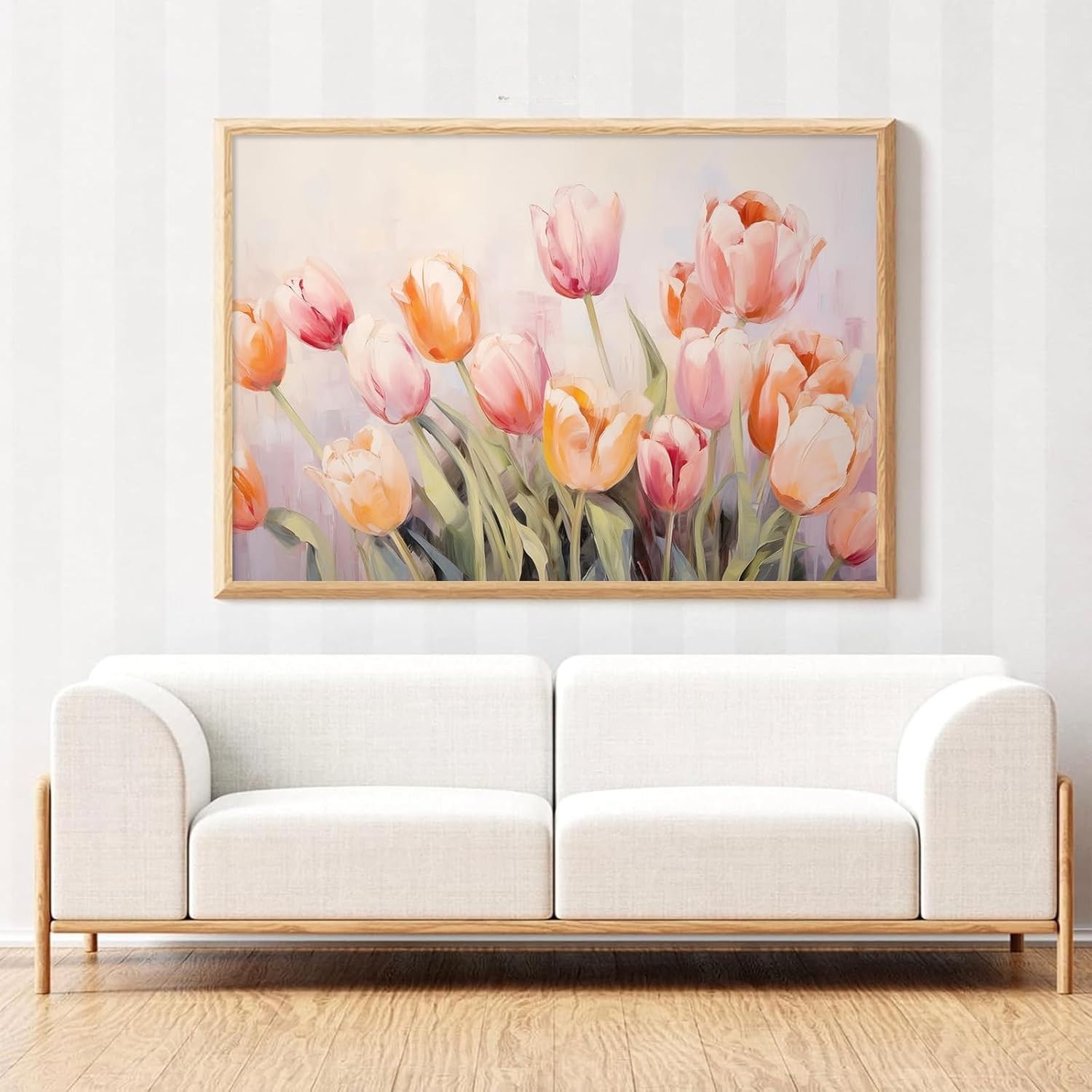 Đánh thức gian phòng bằng vẻ đẹp mong manh của những đóa Tulip hồng cam, như bản giao hưởng mùa xuân dịu dàng, tưới mát tâm hồn và mang đến khởi đầu mới đầy hy vọng.