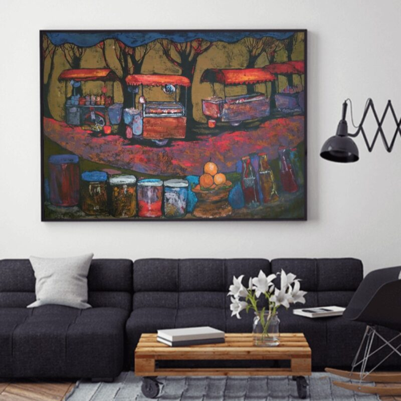 Tranh khắc gỗ Fast Food gây ấn tượng với hình ảnh đồ ăn nhanh được khắc họa sinh động trên nền gỗ màu, các chi tiết chạm khắc sắc nét tạo hiệu ứng nổi bật và chiều sâu cho bức tranh. Chất liệu khắc gỗ màu bền đẹp, bề mặt vân gỗ tự nhiên kết hợp màu sắc hài hòa giúp tranh vừa mang tính nghệ thuật vừa phù hợp trang trí quán ăn, nhà bếp hoặc không gian kinh doanh ẩm thực.