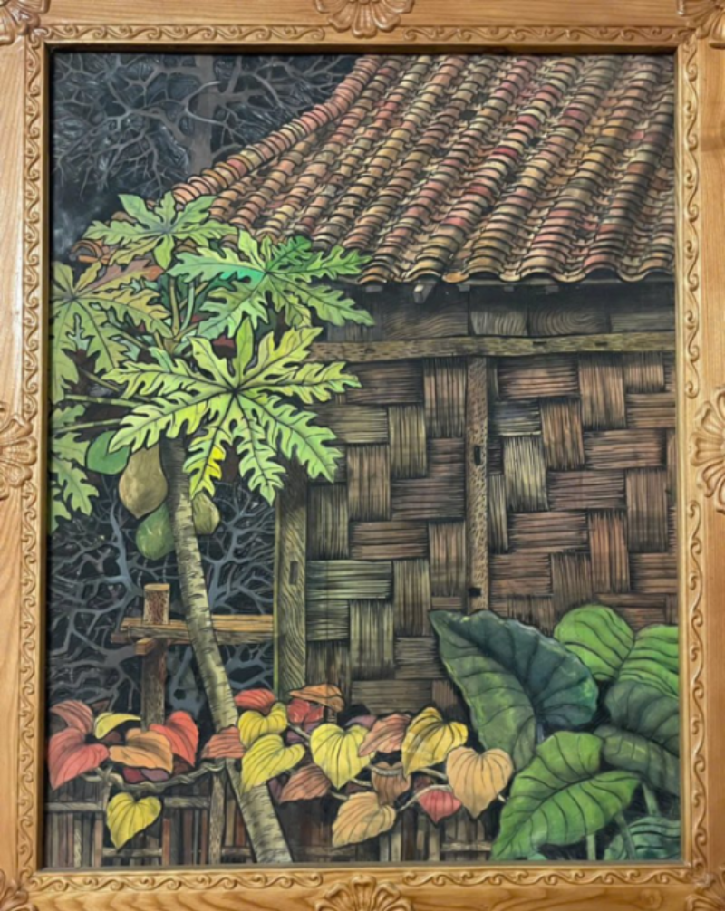 Tranh khắc gỗ một góc nhà là tác phẩm nghệ thuật mang đậm nét truyền thống, tái hiện khung cảnh bình yên của góc nhà Việt xưa với đường nét khắc gỗ tinh xảo và chiều sâu nghệ thuật ấn tượng. Bề mặt tranh được khảm trai thủ công tỉ mỉ, tạo hiệu ứng ánh xà cừ lấp lánh khi có ánh sáng chiếu vào, giúp bức tranh trở nên nổi bật và sang trọng.