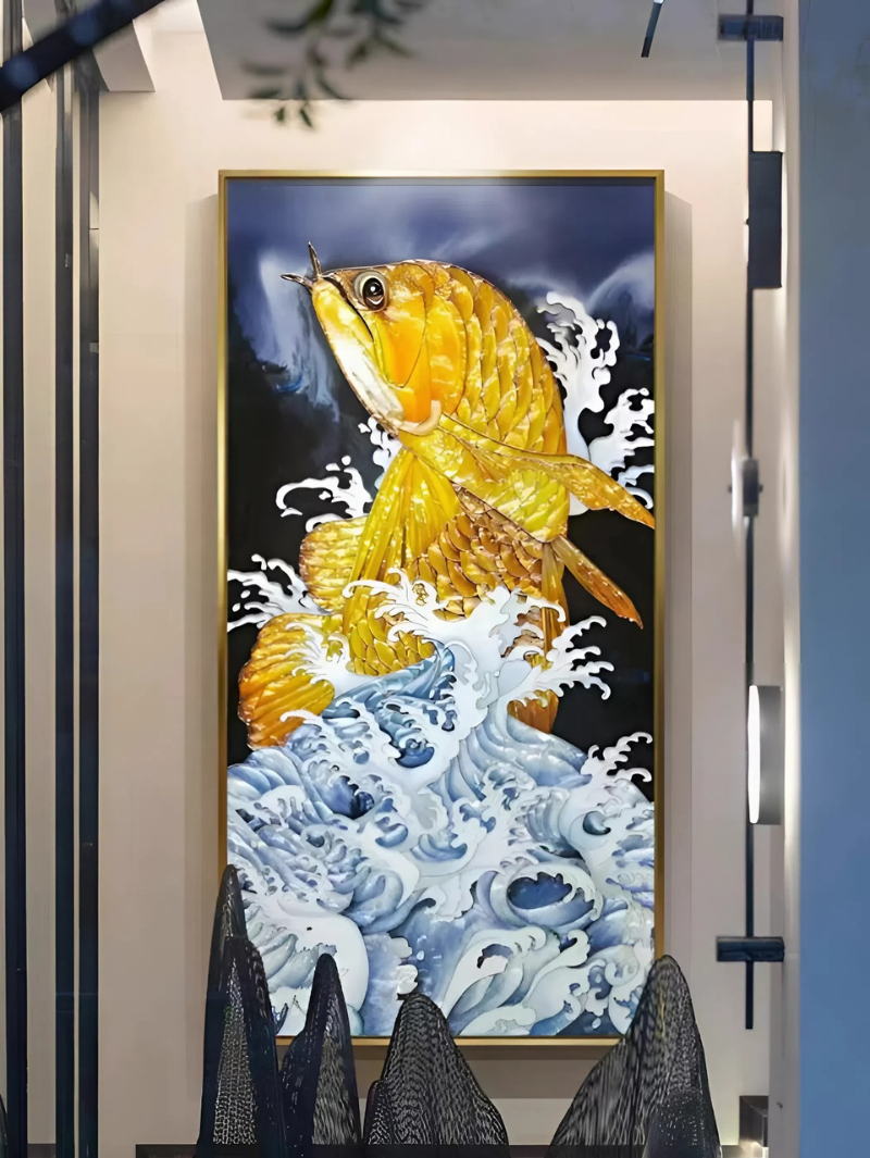 Tranh Khảm Trai Cá Chép Vượt Sóng Tinh Xảo