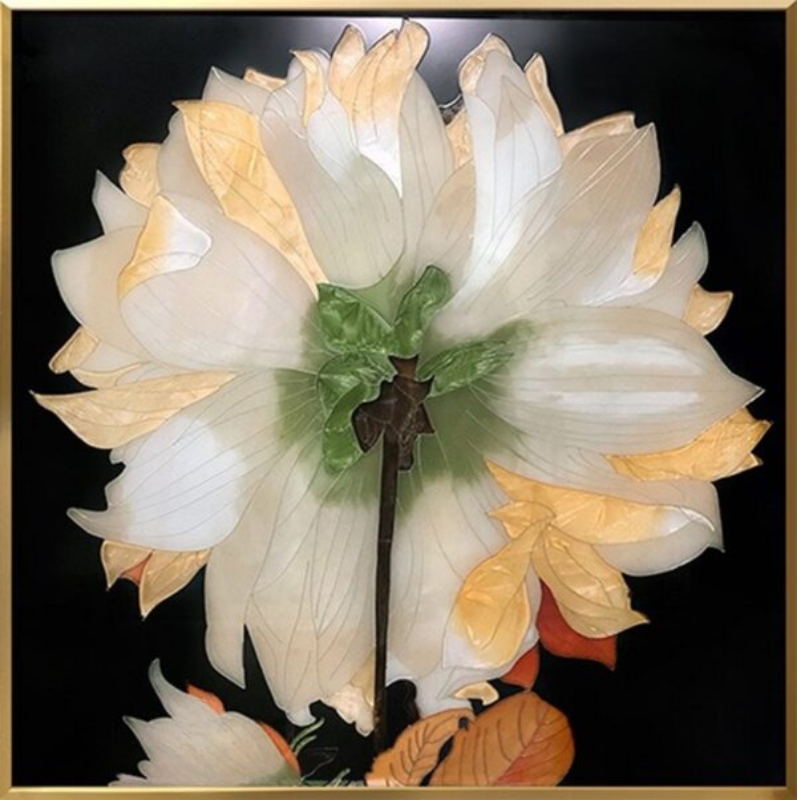Tranh khảm trai hoa nở tái hiện vẻ đẹp rực rỡ của những đóa hoa đang khoe sắc, mang ý nghĩa tươi mới và sinh khí cho không gian sống. Các chi tiết hoa được khảm thủ công từ khảm trai tự nhiên, tạo hiệu ứng ánh xà cừ óng ánh và chuyển sắc tinh tế khi thay đổi góc nhìn.