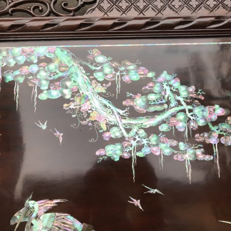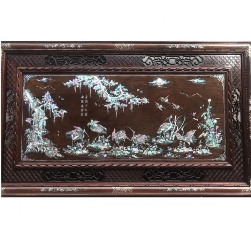 Tranh khảm trai Tùng Hạc Diên Niên là tác phẩm nghệ thuật thủ công tinh xảo, thể hiện hình ảnh cây tùng và chim hạc – biểu tượng của sự trường thọ, may mắn và khí chất thanh cao. Các chi tiết được khảm từ vỏ trai, vỏ ốc tự nhiên, tạo hiệu ứng ánh xà cừ lấp lánh, giúp bức tranh nổi bật và sang trọng trong mọi không gian.
