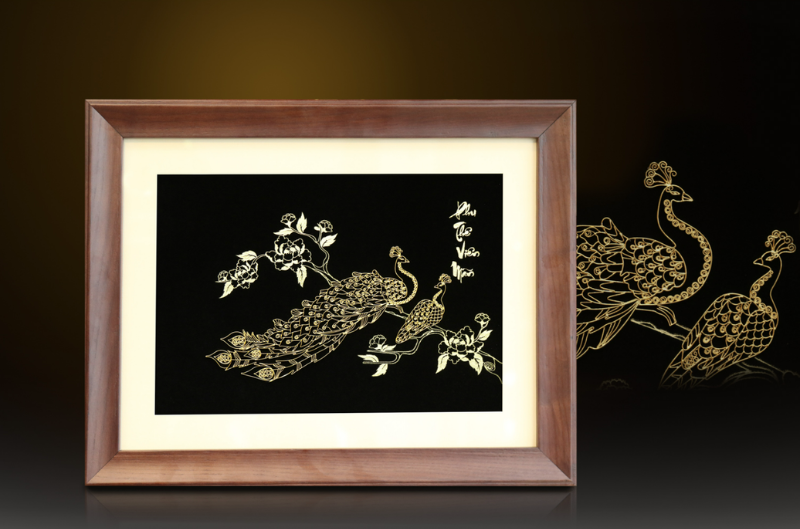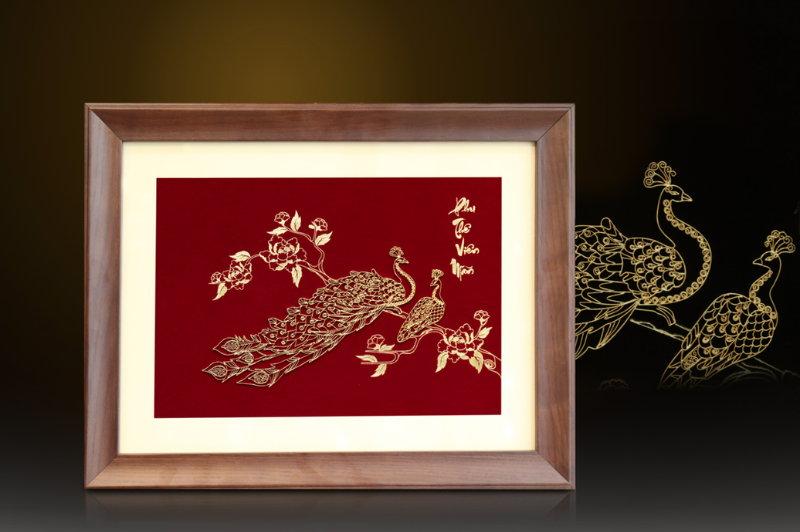 Tranh Mạ Vàng Đôi Chim Công Và Hoa Mẫu Đơn