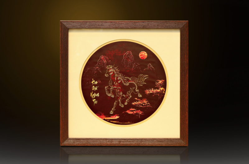 Tranh Mạ Vàng Song Mã Nghinh Tài
