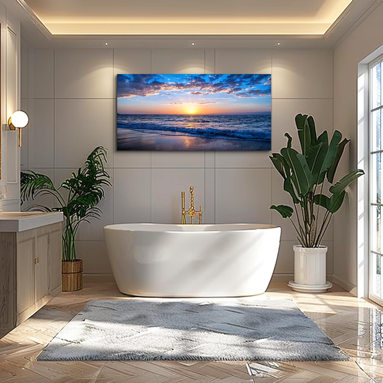 Tranh phong cảnh bờ biển hoàng hôn