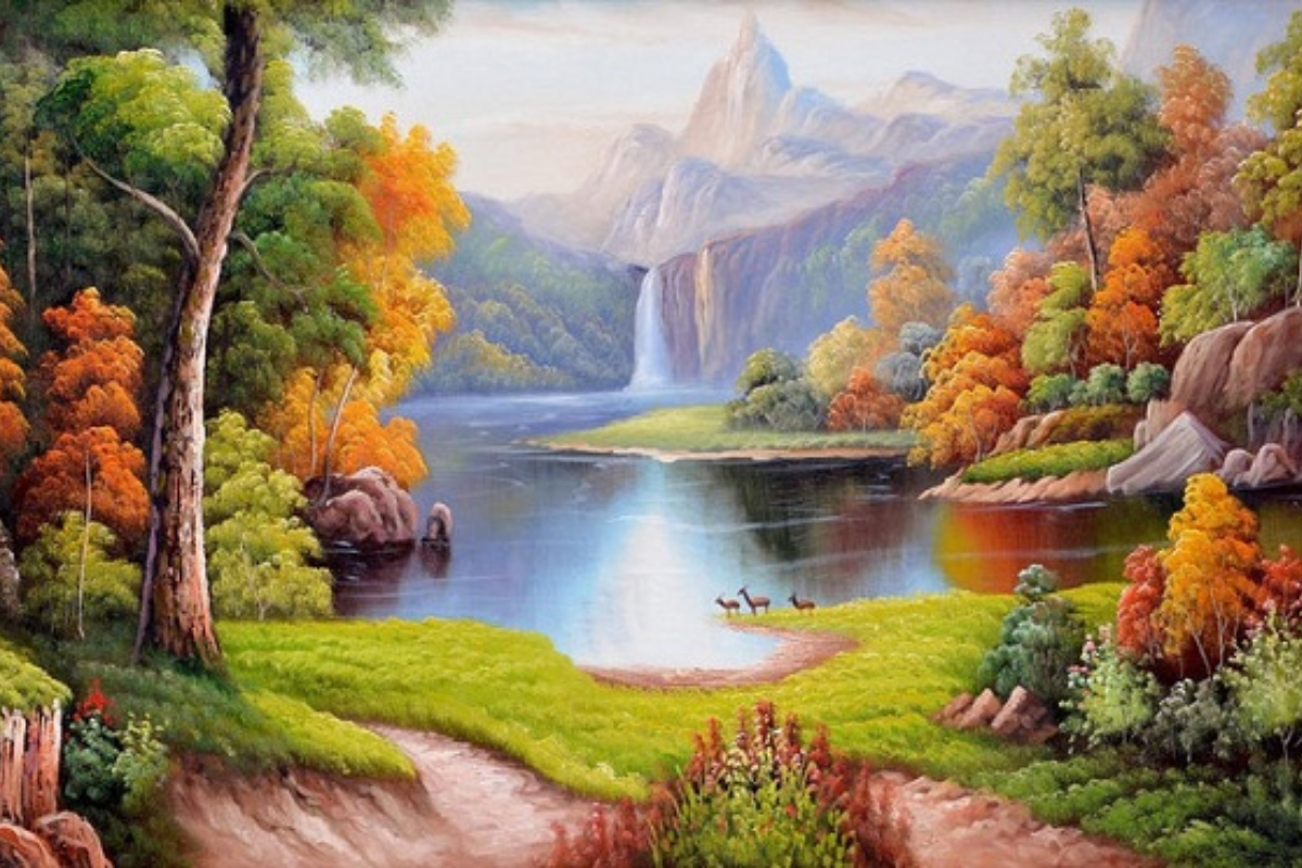 Bức tranh sơn dầu “Mùa Thu Vàng” khổ 180x80cm mang đến một không gian nghệ thuật lãng mạn và ngập tràn năng lượng của sự thịnh vượng. Sắc vàng rực rỡ của rừng cây đang vào độ chín muồi không chỉ sưởi ấm căn phòng mà còn tượng trưng cho một mùa thu hoạch bội thu, mang tài lộc và sự sung túc đến cho gia chủ. Hình ảnh dòng thác nhẹ nhàng đổ xuống hồ nước trong vắt tạo nên thế phong thủy “tụ thủy sinh tài”, giúp luân chuyển sinh khí và giữ gìn của cải. Sự xuất hiện của gia đình hươu thong dong bên bờ suối gợi lên cảm giác an nhiên, hạnh phúc và sự gắn kết bền chặt trong gia đình. Với bố cục tầng lớp sâu thăm thẳm từ con đường mòn dẫn lối đến ngọn núi mờ ảo trong sương, tác phẩm tạo nên một chiều sâu không gian tuyệt vời cho phòng khách. Đây là sự lựa chọn hoàn hảo cho những ai yêu thích vẻ đẹp cổ điển, sang trọng và mong muốn tìm kiếm sự bình yên sau những giờ làm việc căng thẳng.