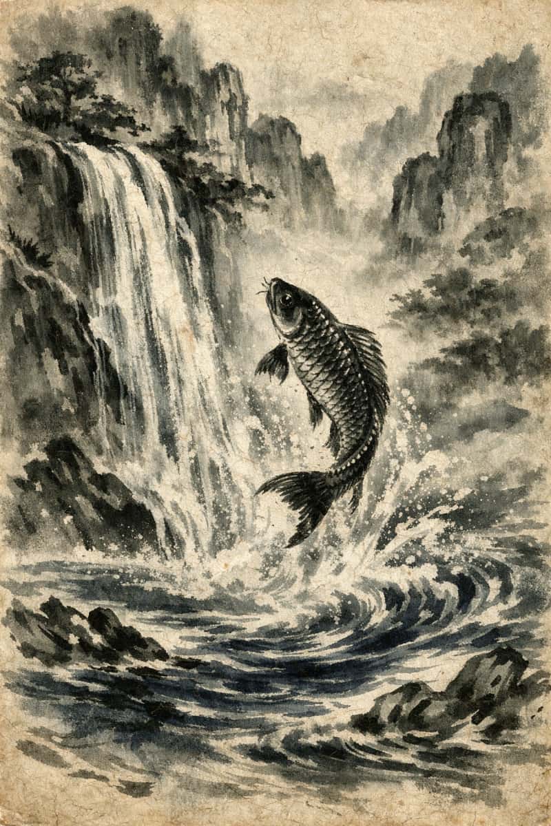 Tranh Thủy Mặc Cá Chép Vượt Thác