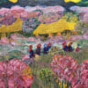 “Xóm mùa hội” sáng tác năm 2024, khắc họa mùa xuân rộn ràng nơi miền Y Tí – Lào Cai, khi người đồng bào cùng nhau bước vào mùa hội. Giữa sắc vàng ấm áp và hoa hồng rực rỡ, hình ảnh mái nhà tranh và dòng người sum vầy gợi cảm giác bình yên, được chở che. Tác phẩm lan tỏa sự gắn kết, yêu thương và niềm vui giản dị nơi núi rừng.