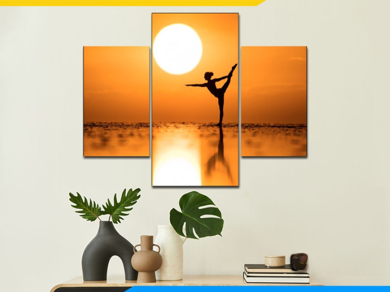 - Chọn tranh mang năng lượng vận động và cân bằng, ví dụ: tư thế chiến binh, vũ công, trăng lưỡi liềm.