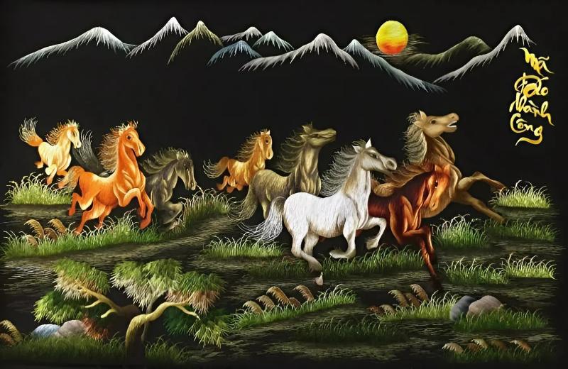 Mỗi bức tranh thêu ngựa đều mang một ý nghĩa riêng, nhưng khi kết hợp với câu chúc “Mã Đáo Thành Công”, bức tranh thể hiện niềm tin vào sự may mắn, thắng lợi và thành công trở về sau mỗi hành trình.