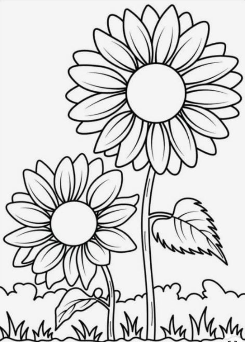 Hoa cúc có cấu trúc rõ ràng — nhụy tròn ở giữa, cánh hoa xếp đều xung quanh — giúp người mới bắt đầu dễ dàng nhận biết và tô màu mà không bị rối mắt.