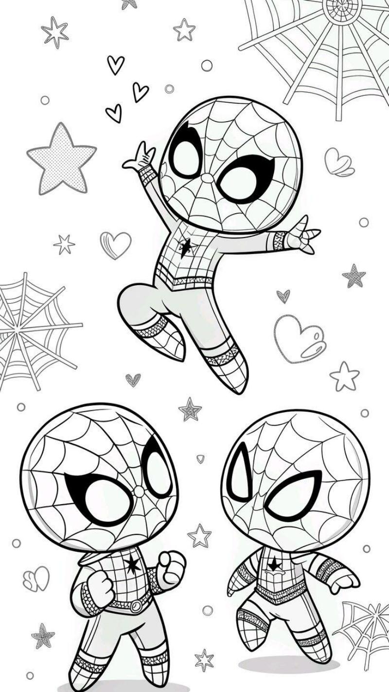 Tranh tô màu Người Nhện chibi