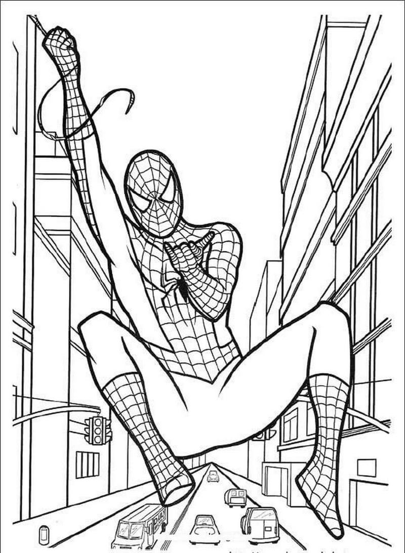 Tranh tô màu Người Nhện đơn giản và hành động