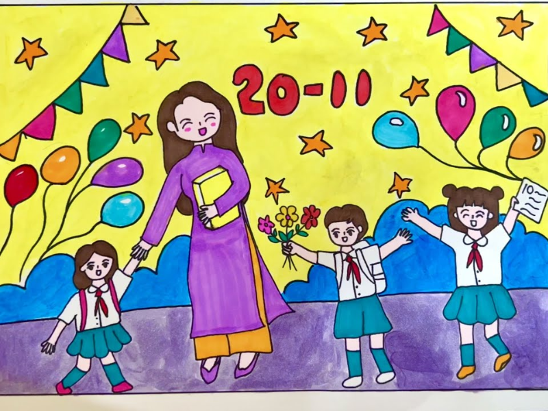 Ngày Nhà giáo Việt Nam 20/11 là dịp để học sinh thể hiện lòng biết ơn bằng những bức tranh giản dị nhưng chứa chan tình cảm. Dưới đây là những mẫu tranh vẽ 20/11 đẹp, ý nghĩa và dễ thực hiện, phù hợp cho học sinh ở mọi lứa tuổi.