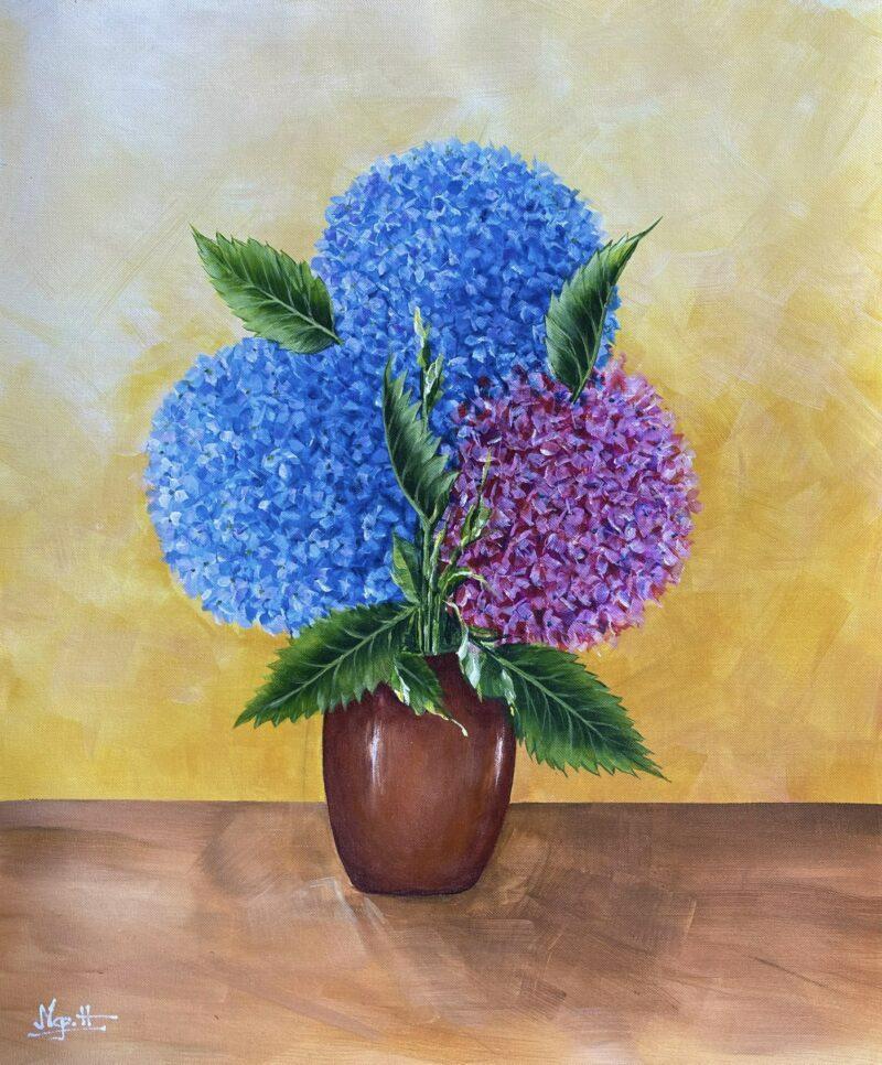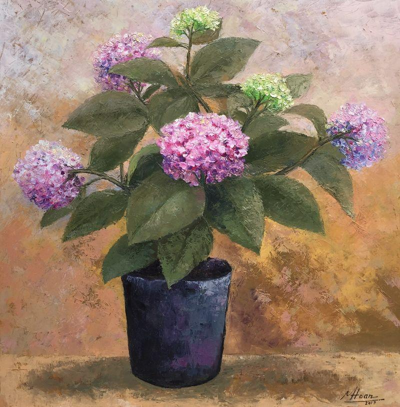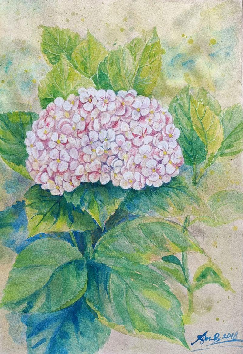 Trong hội họa, hoa cẩm tú cầu thường được xem là biểu tượng của lòng biết ơn, chân thành và cảm xúc tinh tế. Mỗi cánh hoa nhỏ tượng trưng cho những mảnh ký ức, cảm xúc và lời cảm ơn thầm lặng mà người vẽ muốn gửi gắm.